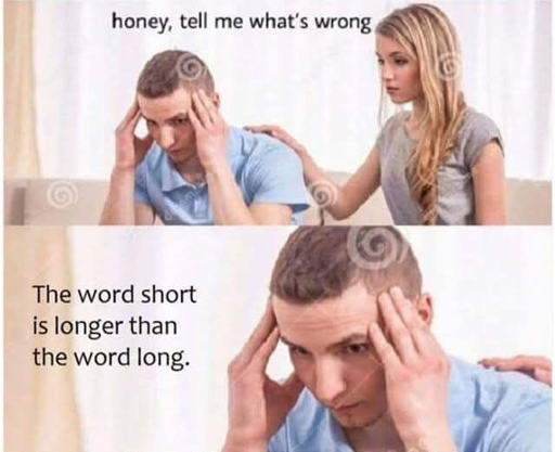 minus-squareboonhet@sopuli.xyzlinkfedilinkarrow-up8·13 days agoŠort Anyway, short in Estonian is “lühike” and long is “pikk” so we have the same issue