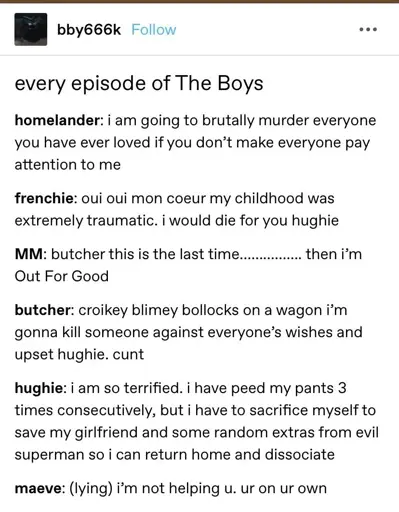 I thought every episode’s script was just: the worst day in Hughie’s life (so far)