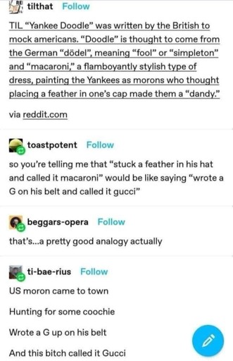 Track_Shovel@slrpnk.net to Microblog Memes@lemmy.worldEnglish · 9 days agoYankee doodleslrpnk.netimagemessage-square13linkfedilinkarrow-up1418arrow-down13
