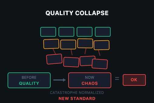 Today’s real chain: React → Electron → Chromium → Docker → Kubernetes → VM → managed DB → API gateways.