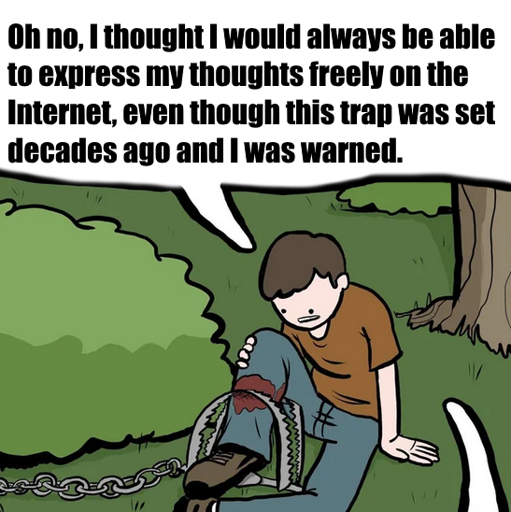 I don’t feel this analogy works, when you think about it. What’s the “trap”? People trying to control what others say? That’s always been the case. And if I knew about it decades ago, I should have… what? Not expressed myself freely? Nah, fuck that.