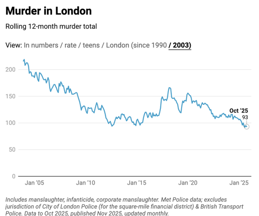 But you’re right, homicide rate is a great indicator of violence in society. London is much more densely populated and interconnected while Canada has lots of places to hide bodies.