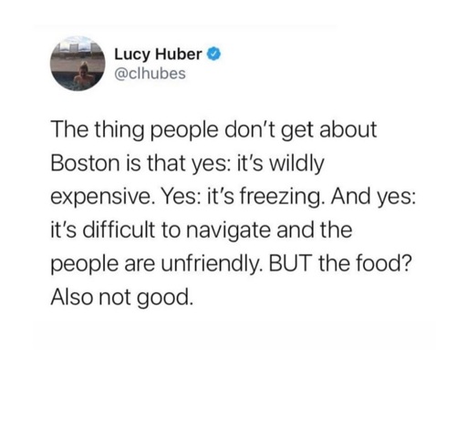 (No seriously I found maybe 3 good pizza places while I lived in Boston and I’m pretty sure 2 of them technically weren’t even in Boston. The pizza there is mid at best)
