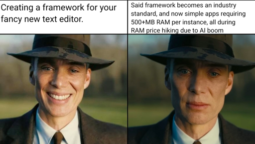 Well, now that Atom has been replaced by VSCode, which is also an electron app, the original Atom devs, or at least some of them, are creating Zed. Zed’s written in Rust and uses a lot less memory.