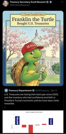 Yeah, I thought high yield on bonds is bad for the government and means they had to increase rates to intice people to buy them. Meaning Trump is bad for the economy, according to the Treasury.