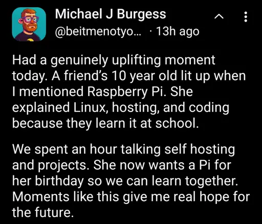arrow-up1933arrow-down1imagewish i would have been a child like thatlemmy.blahaj.zonenot_IO@lemmy.blahaj.zone to Microblog Memes@lemmy.worldEnglish · 23 days agomessage-square45linkfedilinkfile-text