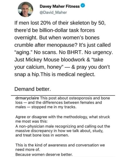 A non-physician male recognizing and calling out the massive discrepancy in how we talk about, study, and treat bone loss in women.