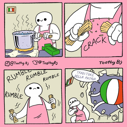 minus-squarerumba@lemmy.ziplinkfedilinkEnglisharrow-up3·9 days agoYup, my wife would give me hell, demand i bring her kitchen shears so we can cut it up, then cut up the kids. She also gets angry if i don’t break ramen blocks into quarters.