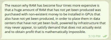 cm0002@toast.ooo to Funny@sh.itjust.works · 5 days agoWhy RAM is so expensivelemmy.mlimagemessage-square41linkfedilinkarrow-up1867arrow-down111
