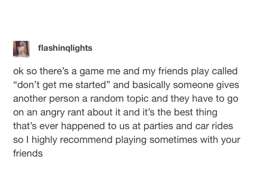It is crucial for both your mental and emotional wellbeing and mine that you absolutely refrain from getting me started