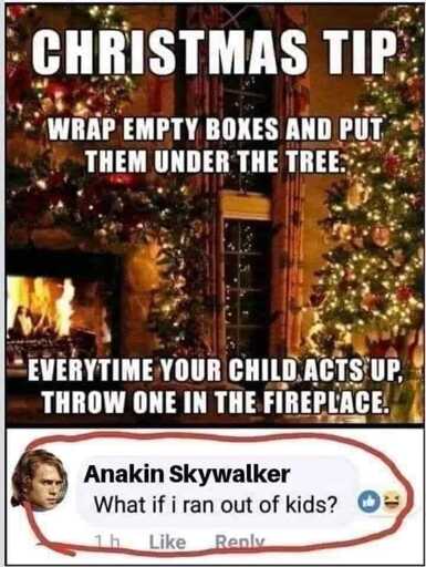 I love meme archeology. Someone posted the original meme to facebook, someone else made the comment, a third person then applied the red circle and reposted the meme + comment as a new image, then a fourth person added Anakin. Like peeling an onion.
