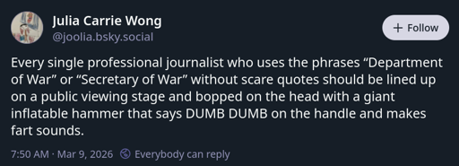 Someplaceunknown@leminal.space to Microblog Memes@lemmy.worldEnglish · 11 days agodumb dumb fart hammersleminal.spaceimagemessage-square38linkfedilinkarrow-up1448arrow-down114file-text