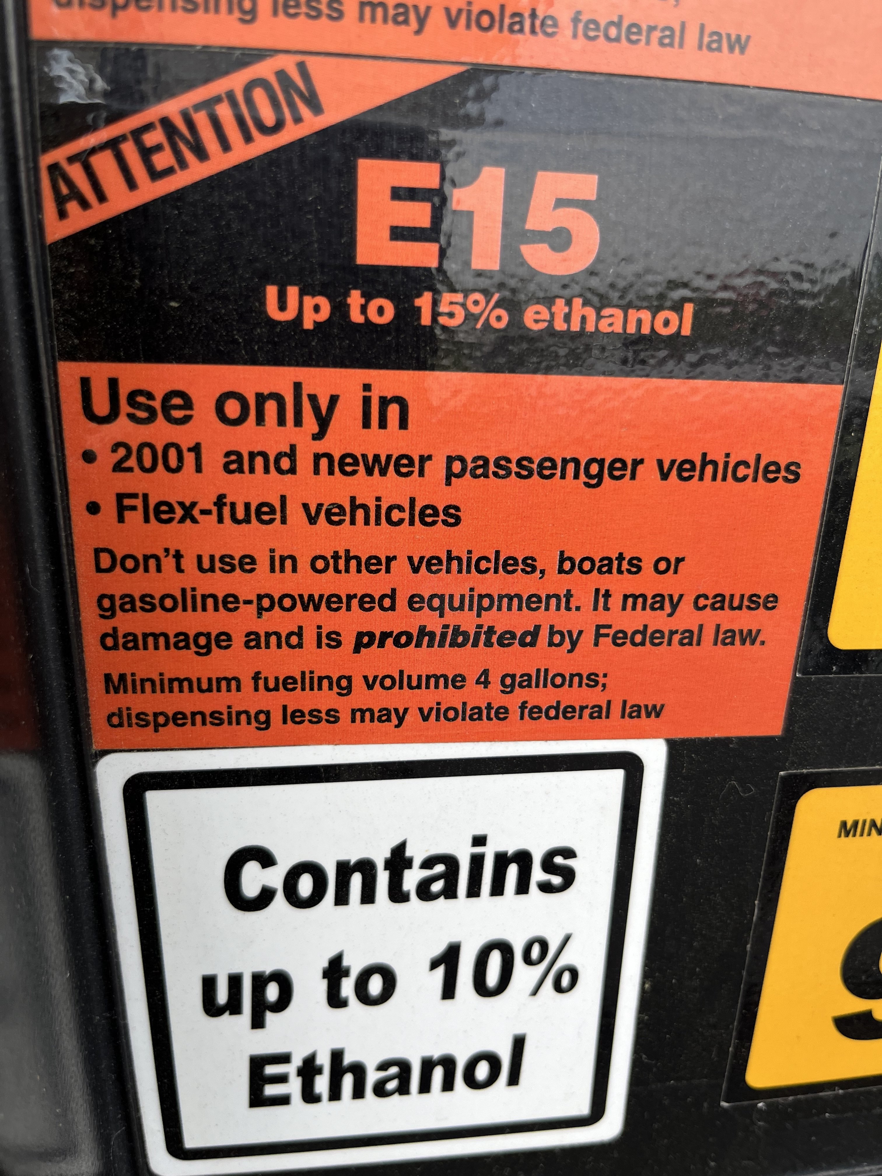 If you buy E15 and fill your tanks, then the next guy buys E10 and only gets 1 gallon, they might end up with a higher ethanol mix than intended, and if they use that on a small motor, like a chainsaw, it could ruin the seals.