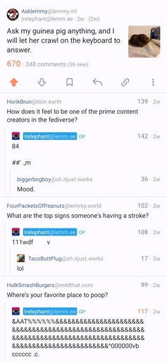 Ludrol@szmer.info to BestOfLemmy@lemmy.worldEnglish · edit-210 months agoGuinea Pig becomes prime content creator on lemmy for a day.szmer.infoimagemessage-square32linkfedilinkarrow-up1771arrow-down111file-text