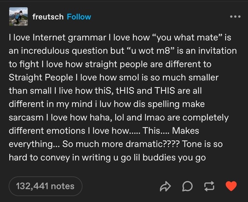 Language is just so much more interesting when you start ignoring all the weird, stuffy rules