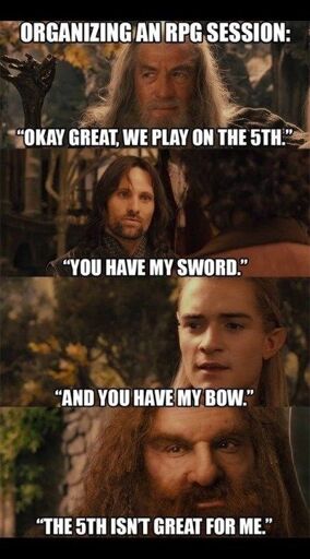 arrow-up1368arrow-down1imageDamn schedulinglemmy.worldPugJesus@lemmy.world to RPGMemes @ttrpg.networkEnglish · 9 months agomessage-square5linkfedilinkcross-posted to: lotrmemes@lemmy.dbzer0.com