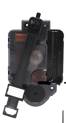 For anyone who doesn’t know, a clock movement is the mechanism that causes the hands of an analog clock to move around the clock face. The “with pendulum” part means that it also swings a weight back and forth to act as a fancy second hand: