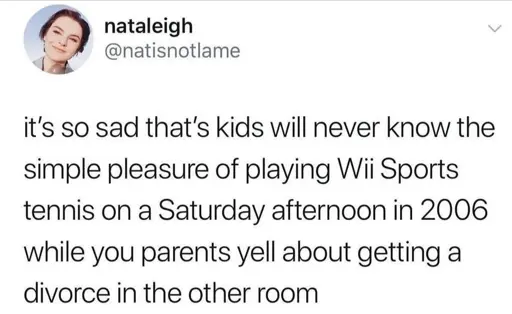 Yeah like the parents who were in the process of divorcing because their kid insisted on playing wii instead of mediating their fight