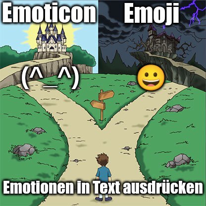 „Emoji“ hingegen stammt aus dem Japanischen und bedeutet wörtlich soviel wie „Bildschriftzeichen“.