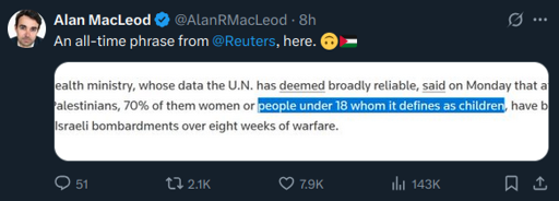 it feels weird debating “what age = ‘children’” in a report about people getting blown up in a genocide