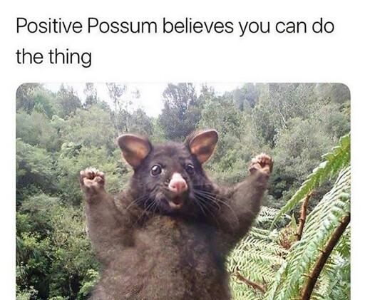 LadyButterfly she/her@piefed.blahaj.zoneM to Lemmy Be Wholesome@lemmy.worldEnglish · 7 months agoPositive possum says yes you canpiefed.cdn.blahaj.zoneimagemessage-square8linkfedilinkarrow-up1321arrow-down18