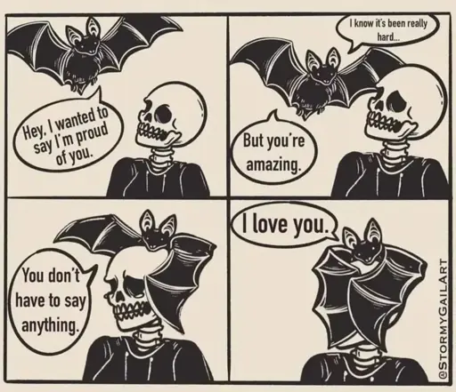arrow-up1243arrow-down1imageDawwwwpiefed.cdn.blahaj.zoneLadyButterfly she/her@piefed.blahaj.zone to Comic Strips@lemmy.worldEnglish · 9 months agomessage-square8linkfedilink cross-posted to: lemmybewholesome@lemmy.world