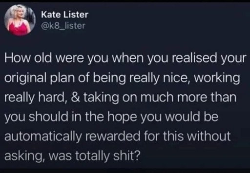 There’s no call to be less good or less yourself. But it’s helpful to have stress management, relaxation, and self-support skills along with tempered expectations to maintain a healthy mental state. Then the rewards that never materialize aren’t as big a deal.