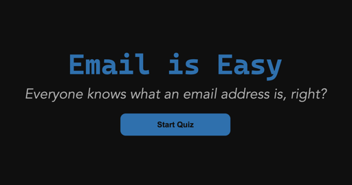 TheBigRoomXXL@leminal.space to Programmer Humor@programming.devEnglish · 2 months agoEveryone knows what an email address is, right? (Quiz)e-mail.wtfexternal-linkmessage-square154linkfedilinkarrow-up1911arrow-down18